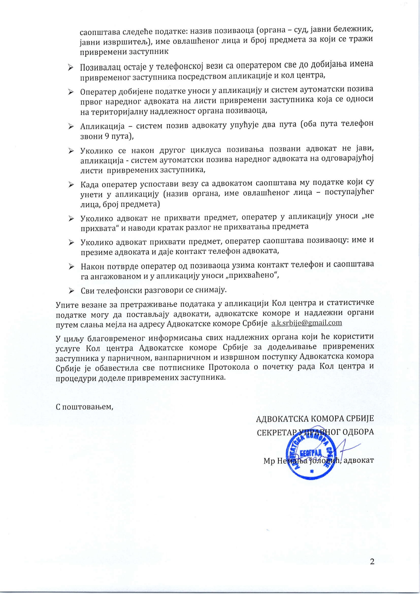 U nastavku se možete upoznati sa obaveštenjem Advokatske komore Srbije o početku rada Kol centra i procedurom za dodeljivanje privremenih zastupnika.